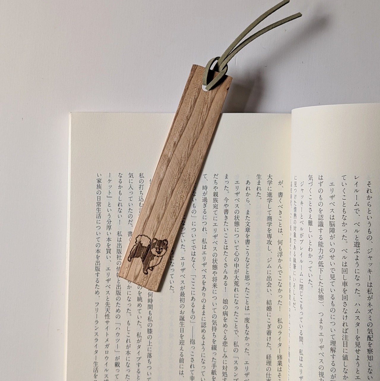 愛犬のイラストで天然目のしおりをお作りいたします。