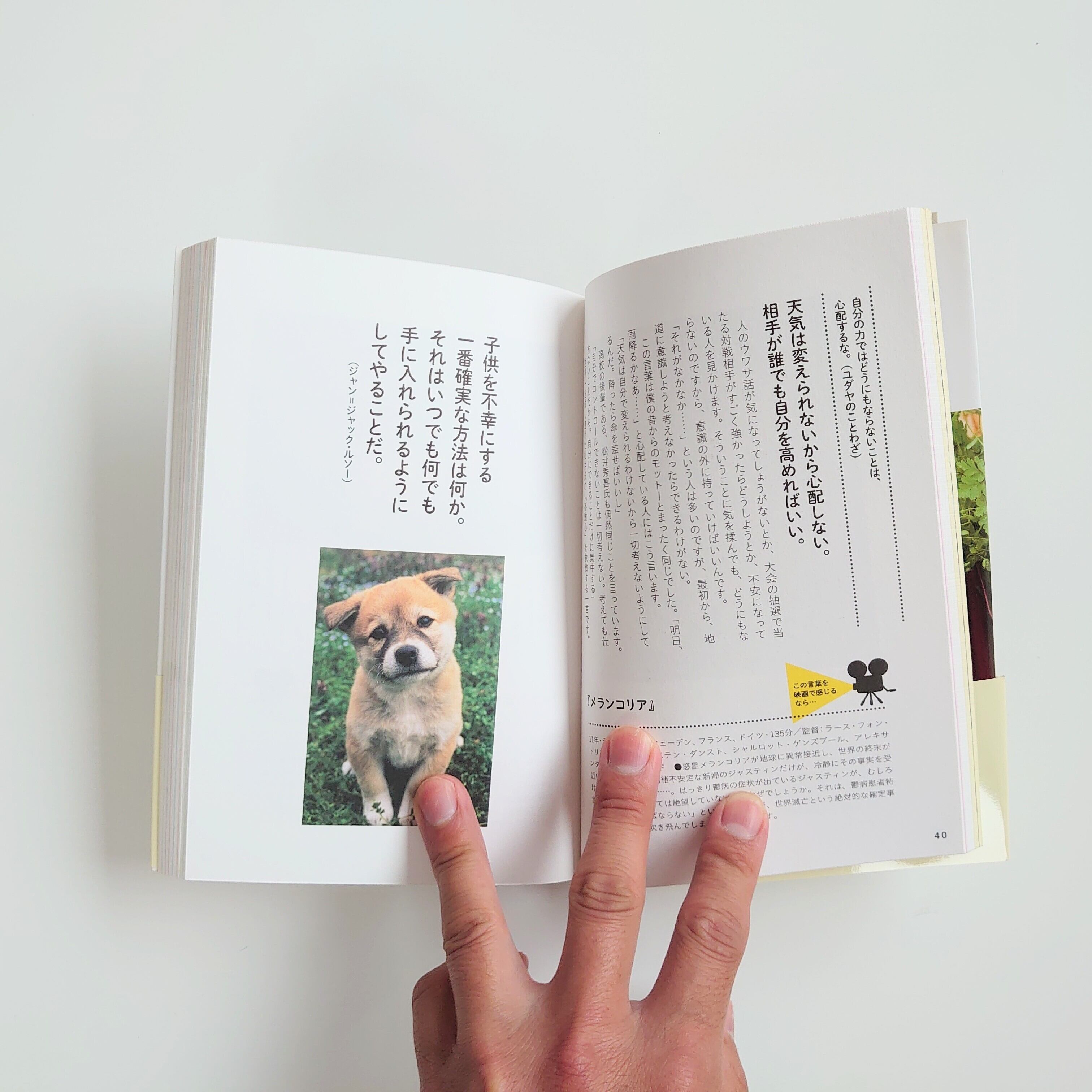 それぞれの言葉にぴったりハマった映画も紹介。エンターテイメント性の高い自己啓発本です。